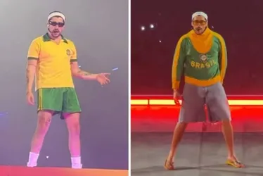 Bad Bunny veste casaco de Pelé, usado na Copa de 1966, durante show no Brasil