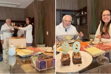 Mas a data não passou em branco. Renata de Nóbrega, esposa do apresentador, presenteou o parceiro com um café da manhã especial. O vídeo, publicado no Instagram, mostra a preparação para a ocasião, com mesa recheada de diferentes comidas.