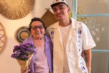 A atriz Tânia Maria, a Dona Sebastiana de O Agente Secreto, conheceu João Gomes e compartilhou uma foto ao lado do cantor pernambucano.