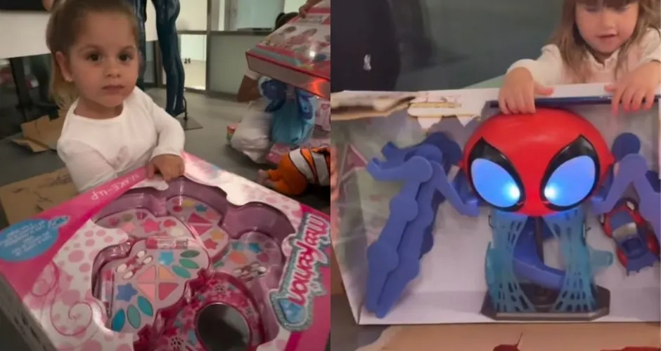 É possível ver que as crianças ganharam brinquedos variados: kits de maquiagem, roupas de princesas e de super-heróis. Para José, que tem apenas um ano, há brinquedos educativos, como de encaixar peças.
