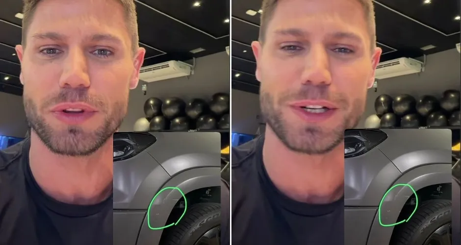 "Dei uma raspadinha ontem num carro", explicou o ex-BBB. "Foi um arranhão, literalmente."
