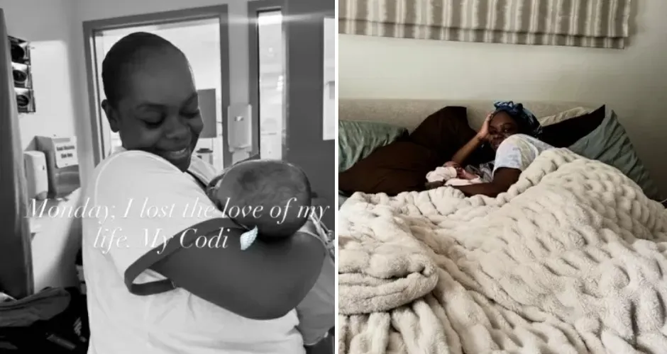 Na foto, Cori aparece segurando a criança no colo. Ela deixou a imagem em preto e branco, com um emoji de anjo. "Perdi o amor da minha vida", escreveu.