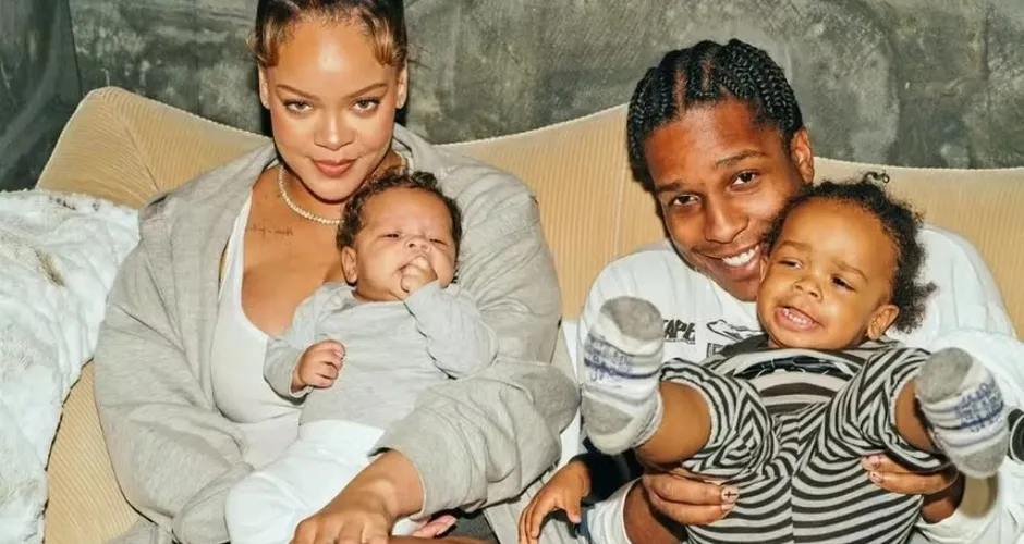 Rihanna acompanhada do marido, A$AP Rocky, e de RZA e Riot Rose, dois de seus filhos |  Foto: Reprodução/Redes Sociais