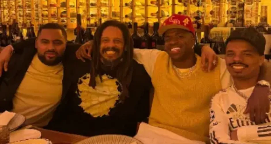 Após ajudar o Real Madrid a derrotar o Benfica pela Liga dos Campeões na última quarta-feira, com direito a um gol seu, classificando a equipe, Vini Jr. foi para um restaurante em Madri ao lado de ninguém menos que três familiares de Bob Marley. YG (sobrinho de Bob), Rohan (filho) e Nico Marley (neto) assistiram ao jogo. No jantar, muita diversão, com direito a coro para cantar “Praise Jah In The Moonlight”, canção de YG.