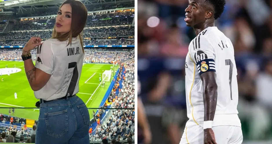 Nas redes sociais, ela deu pistas sobre este novo relacionamento e chegou a aparecer com uma camisa do Real Madrid assinada por Vini.