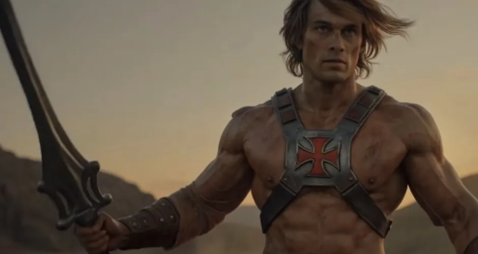 Apostando em uma estética retrô dos anos 1980, o teaser brinca com a nostalgia pelo desenho clássico do He-Man. "E talvez, agora mais do que nunca, precisamos de heróis desse tipo novamente", afirma o narrador. Além de Galitzine, é possível ver detalhes da Espada de Grayskull e do reino de Eternia.