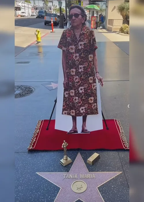 A atriz Tânia Maria ganhou uma "estrela" na calçada da fama em Los Angeles. Não se trata de uma homenagem oficial, mas sim de uma brincadeira da Vitrine Filmes, distribuidora brasileira do filme O Agente Secreto, que montou um cenário improvisado no emblemático caminho das estrelas em Hollywood.