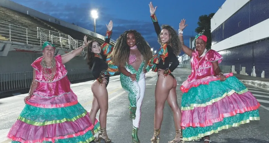 As baianas Rita Ramos e Adeildes Santa Rosa, o destaque Amanda Ribeiro e as passistas Carol Gava e Maria Eduarda Souza estão entre os integrantes da agremiação que vão participar do encontro.