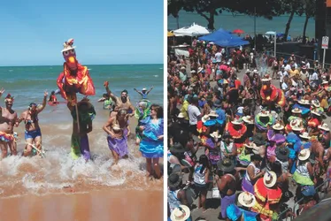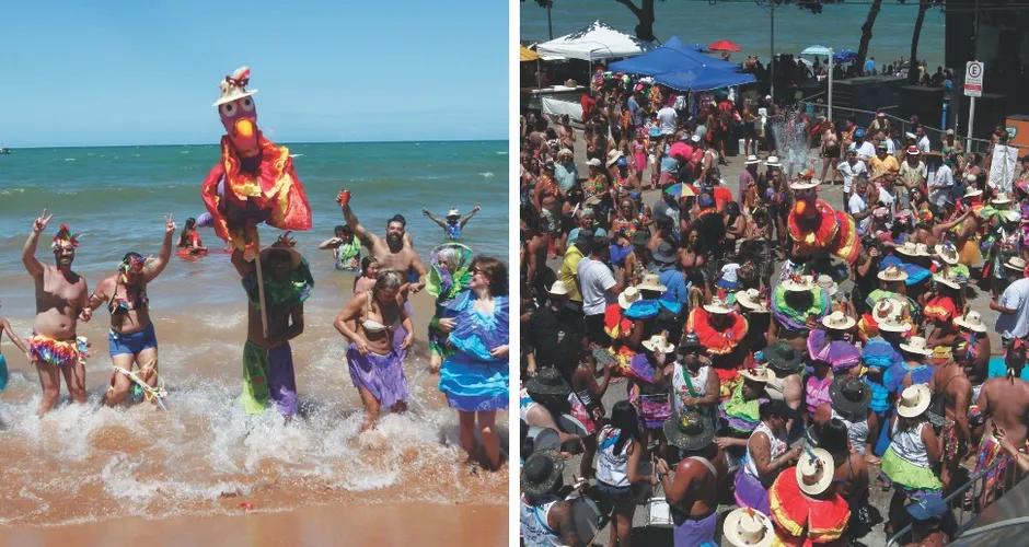Ao som da batucada de 11 blocos e fantasias coloridas, o tradicional Banho de Mar à Fantasia de Manguinhos reuniu moradores e visitantes ontem, celebrando uma história que atravessa gerações.
