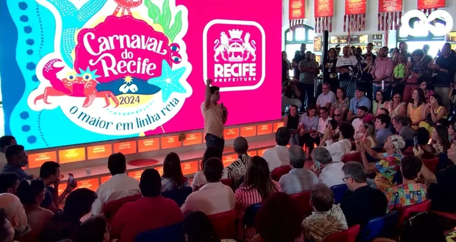 O prefeito do Recife, João Campos (PSB) lançou nesta quarta-feira (17) no Paço do Frevo, a programação oficial do Carnaval do Recife em 2024. Serão seis dias oficiais de festa, começando na quinta-feira (8) com a abertura no Marco Zero do Recife. Gilberto Gil será a principal atração da noite. os homenageados deste ano serão a cirandeira Lia de Itamaracá e um dos fundadores do movimento Mangue Beat, Chico Science.
