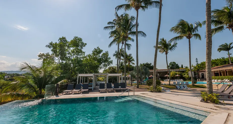 O hotel tem seis piscinas, todas aquecidas, sendo uma coberta e outra com borda infinita com vista para as montanhas, onde o pôr do sol é um convite para belas fotografias. Há piscina de biribol. Duas piscinas infantis, uma com toboágua e outra Kids com vários brinquedos aquáticos.