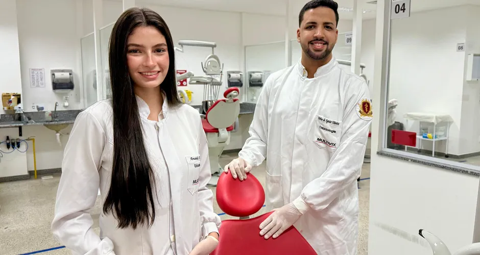 AMANDA Sodré Borgo Kill e Arthur de Aguiar Oliveira, alunos de Medicina da Multivix: ensino em saúde na faculdade ganhará reforço no próximo ano |  Foto: Caderno Especial