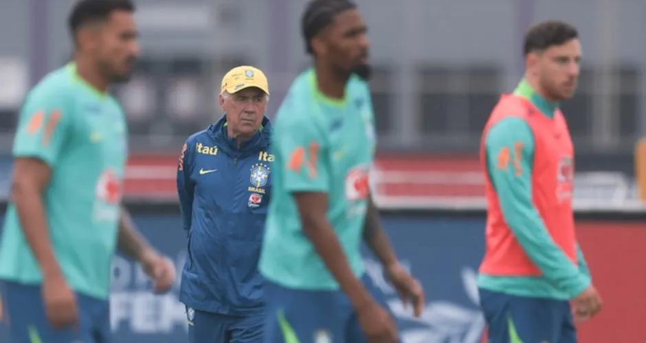 Debaixo de chuva, Carlo Ancelotti comandou o último treino da seleção no CT Joaquim Grava, em São Paulo, antes da viagem a Guayaquil, onde o Brasil enfrenta o Equador pelas Eliminatórias da Copa do Mundo de 2026. O treinador italiano ainda não definiu a escalação e pode modificar o esquema que vinha sendo utilizado pela equipe nos últimos jogos.