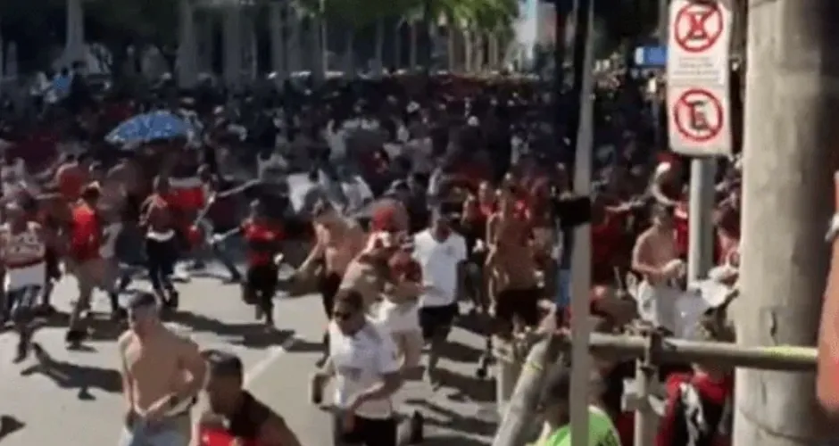 A celebração do tetracampeonato da Libertadores do Flamengo terminou em confusão na tarde deste domingo (30), no centro do Rio de Janeiro. Pouco depois de o trio elétrico com jogadores e comissão técnica encerrar o trajeto pela rua Primeiro de Março, torcedores que acompanhavam o cortejo entraram em confronto com policiais militares, que reagiram com gás de pimenta e disparos de balas de borracha.