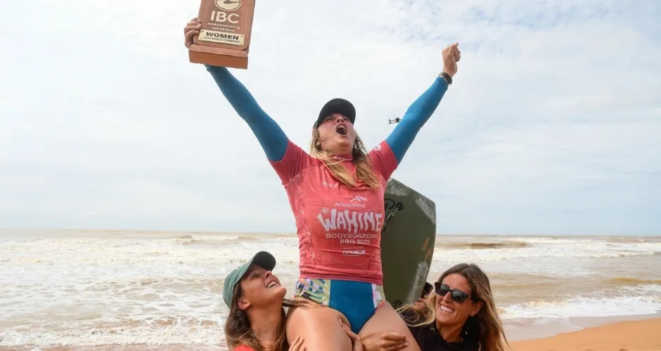 Alexandra Rinder, número 2 do mundo, é a grande campeã do Circuito Mundial de Bodyboarding 2025 na categoria Profissional. A atleta, das Ilhas Canárias e que compete pela Áustria, confirmou o título nas quartas de final do ArcelorMittal Wahine Bodyboarding Pro 2025, nesta quarta-feira (17). A competição acontece na praia de Solemar, em Jacaraípe, até o próximo domingo (21).