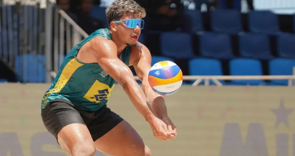 Lucas Silva, de 18 anos e 2,03m, chega embalado após disputar a primeira etapa do Circuito Brasileiro de Vôlei de Praia, em Navegantes (SC).