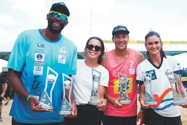 No masculino, Evandro e Arthur Lanci perderam para George e Saymon por dois sets a zero (21/14 e 21/16).