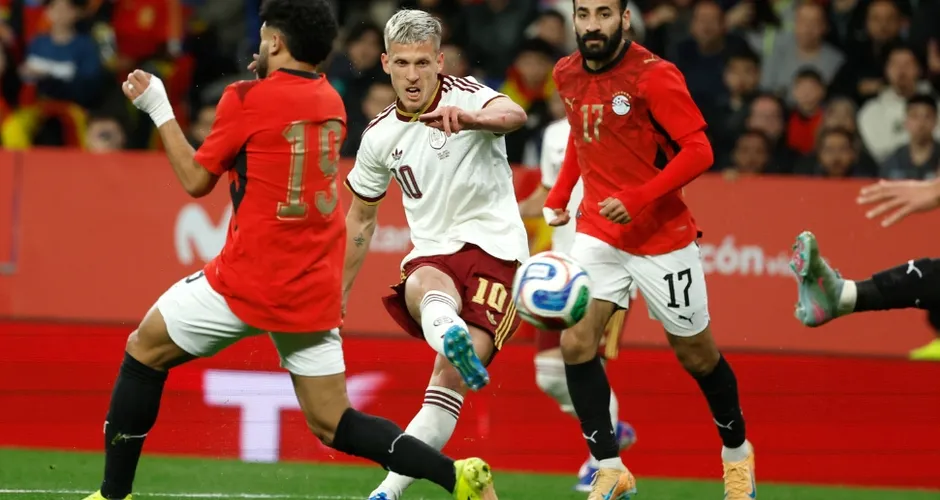 A poderosa Espanha teve amplo domínio em campo mas, bastante modificada e mesmo com um jogador a mais nos minutos finais, não conseguiu ir além de um 0 a 0 com o Egito no RCDE Stadium, casa do Espanyol - originalmente o jogo seria no estádio Lusail, no Catar, após a Finalíssima com a Argentina, mas a guerra no Oriente Médio cancelou a decisão e ainda o transferiu para Barcelona.