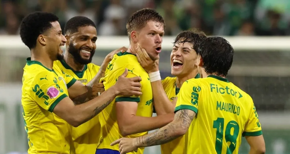 Bruno Fuchs, Vitor Roque (duas vezes), Felipe Anderson e Flaco López fizeram os gols do Palmeiras após Jhon Jhon abrir o placar para o Bragantino.