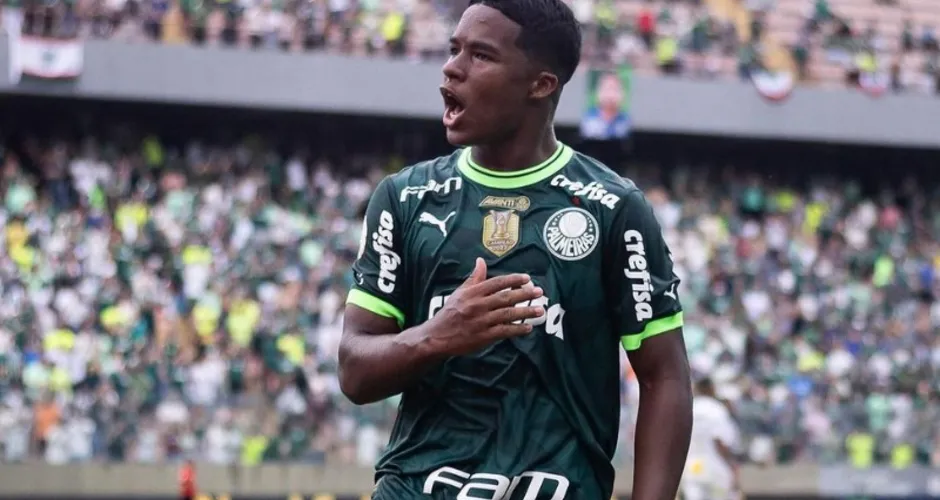 O primeiro gol de Endrick na virada do Palmeiras sobre o Botafogo por 4 a 3 foi eleito o mais bonito do Brasileiro.