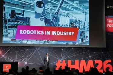Jochen Köckler, CEO da Deutsche Messe, na feira de tecnologia Hannover Messe 2026, a maior feira de tecnologia industrial do mundo. |  Foto: Hannover Messe/Divulgação