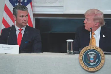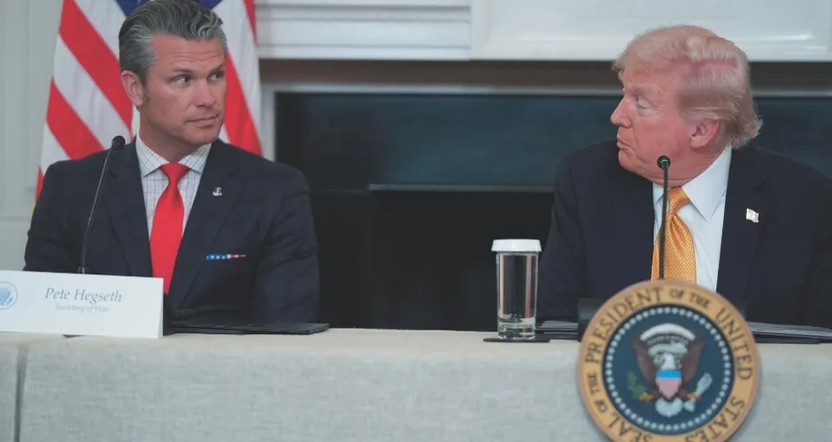 Pete Hegseth, secretário de Defesa dos EUA, ao lado de Donald Trump