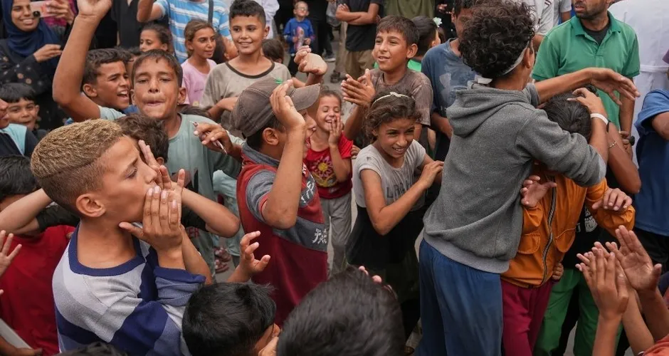 Palestinos comemoram após o anúncio de que Israel e o Hamas concordaram com a primeira fase de um plano de paz para interromper os combates, em frente ao Hospital Al-Aqsa em Deir al-Balah, centro da Faixa de Gaza, nesta quinta- feira, 9 de outubro de 2025. As comemorações permanecem limitadas, pois o alívio se mistura ao luto e à preocupação com o que está por vir |  Foto: ABDEL KAREEM HANA/ASSOCIATED PRESS/ESTADÃO CONTEÚDO