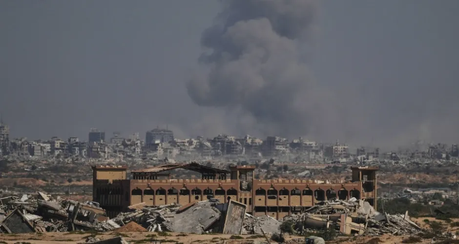 Arquivo: Fumaça sobe após um ataque militar israelense na Cidade de Gaza, visto a partir do centro da Faixa de Gaza, nesta quarta-feira, 8 de outubro de 2025