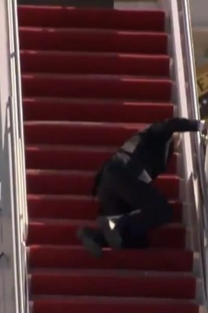 Joe Biden tropeça três vezes e cai nas escadas no Air Force 1