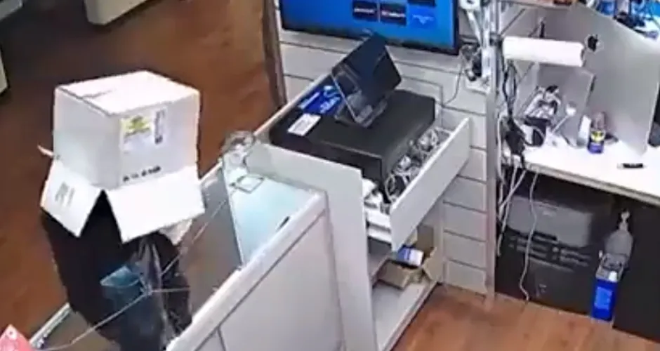 Um norte-americano "inovou" durante a execução de um roubo em uma loja de eletrônicos, em Miami Gardens, na Flórida, Estados Unidos, no último sábado (3). Conforme informações da NBC1, o homem improvisou uma caixa de papelão e a colocou na cabeça para esconder sua identidade. As imagens do momento viralizaram nas redes sociais.