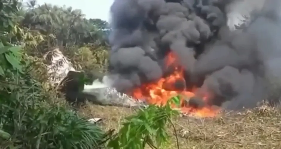 Avião militar explodiu após queda, na segunda-feira (23) |  Foto: Reprodução / Band