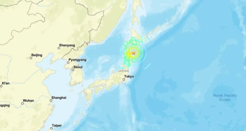 Epicentro do terremoto foi a 80 km da costa da província de Aomori, a uma profundidade de aproximadamente 50 km |  Foto: Serviço Geológico dos Estados Unidos (USGS)