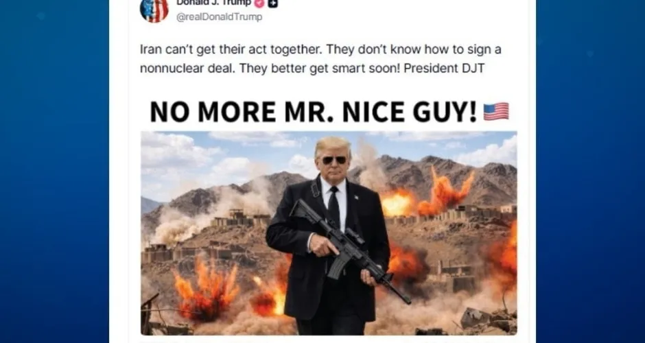 Trump diz que cansou de ser 'bonzinho' com Irã e exibe imagem de IA com fuzil