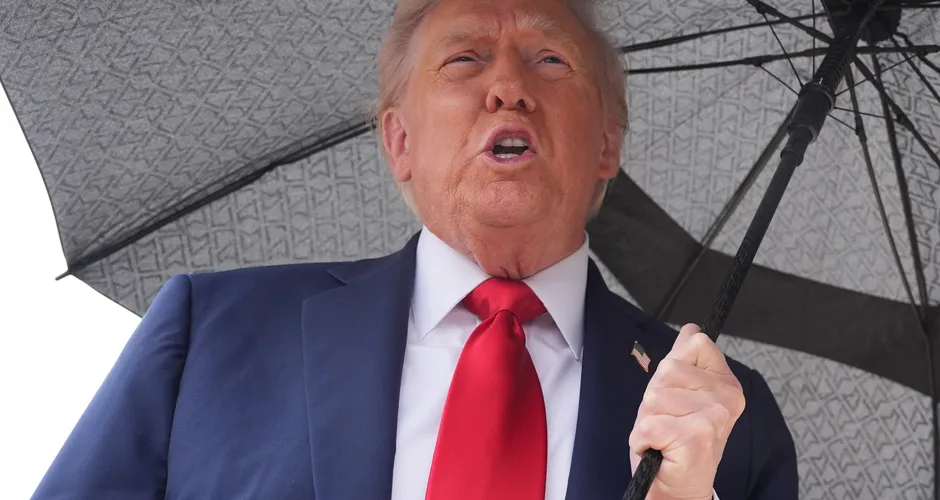 Donald Trump fala com repórteres antes de embarcar a caminho do Oriente Médio.