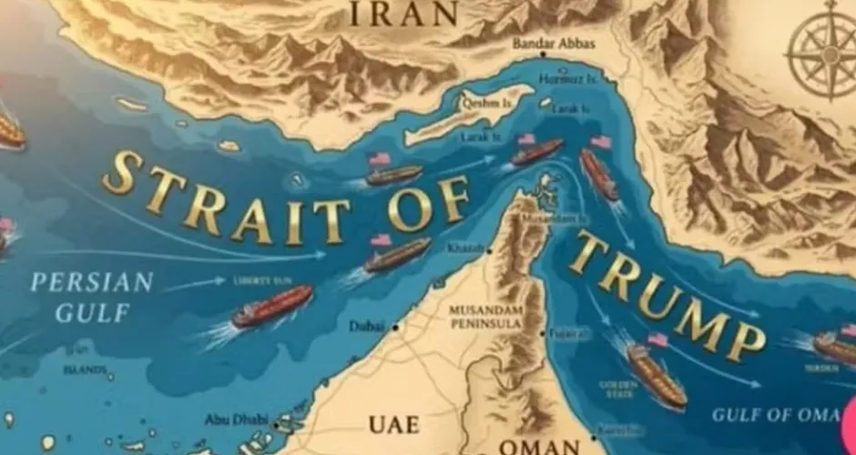 Trump posta imagem do Estreito de Hormuz renomeado como 'Estreito de Trump'