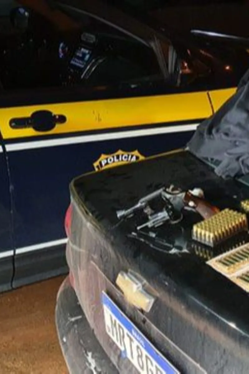 A Polícia Rodoviária Federal (PRF) apreendeu um revólver cal 38 e 180 munições após acompanhamento tático na BR 101. Eles contaram que uma equipe realizava ronda no km 295, que fica no município de Viana, quando deram ordem de parada a um veículo que transitava com os faróis apagados.