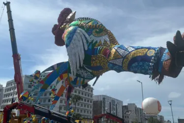 Prestes a ser erguido, Galo da Madrugada já está na Ponte Duarte Coelho, no Recife