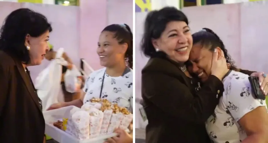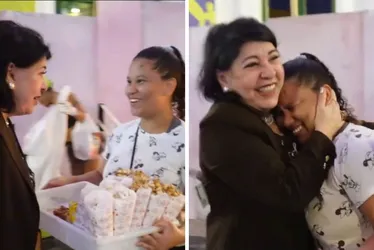 Atônita, a vendedora fixou o olhar no dinheiro e, com a voz embargada, perguntou: "Sério?". Ao confirmar que o valor era dela, a jovem não conteve as lágrimas e foi amparada pela cantora. Agradeceu muito. Ela tinha começado a vender pipocas naquele dia.