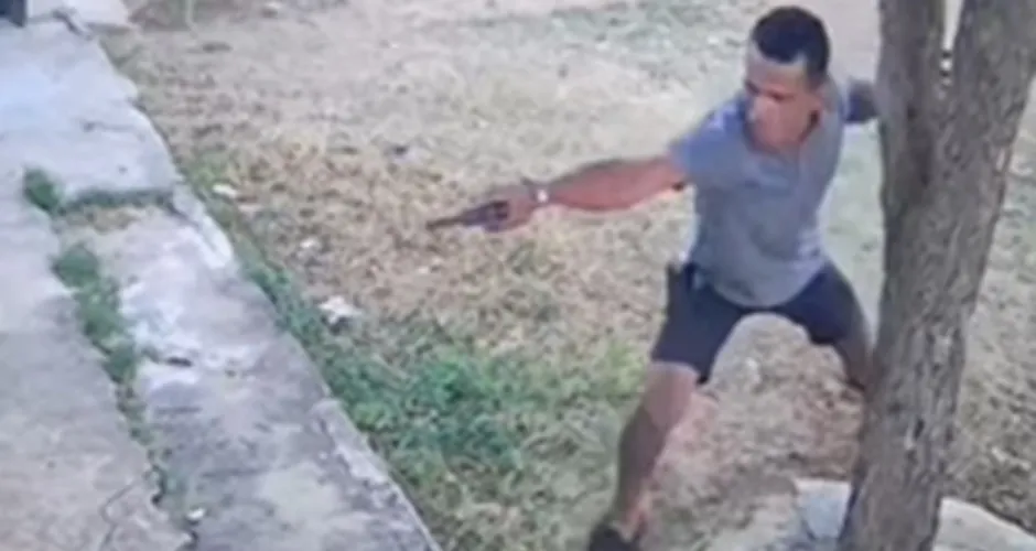Imagens de câmeras de segurança do local registraram a sequência da agressão. O vídeo mostra o momento em que o homem sai de sua residência armado e efetua disparos contra as vítimas, que estavam na calçada. Durante a ação, os vizinhos conseguem correr e fechar o portão da residência, que chega a ser chutado várias vezes pelo atirador antes de ele deixar o local.