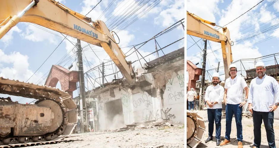 Construído na década de 1940, o antigo Mercado Público de Camaragibe começou a ser demolido nesta segunda-feira (24) para dar lugar à segunda etapa do novo equipamento. A prefeitura iniciou oficialmente a obra, orçada em R$ 10 milhões em parceria com o Governo de Pernambuco, em mais um avanço no processo de requalificação da área central da cidade.