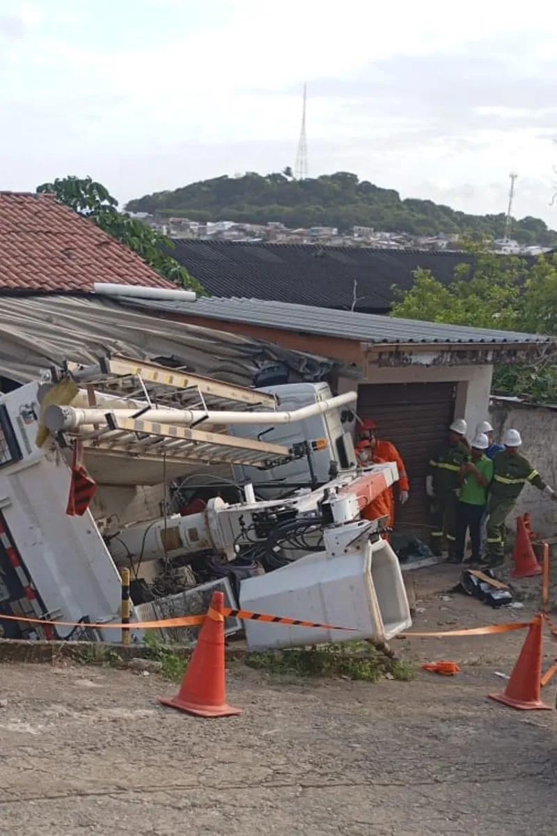 Caminhão da Neoenergia desce ladeira desgovernado e atinge residência em Olinda