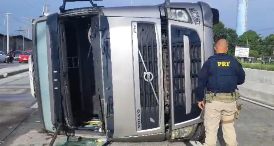 O veículo de carga ficou atravessado, bloqueando a passagem principal. O condutor teria pedido ajuda a moradores para acionar o socorro, mas não foi encontrado no local pelas equipes da PRF quando os agentes chegaram.