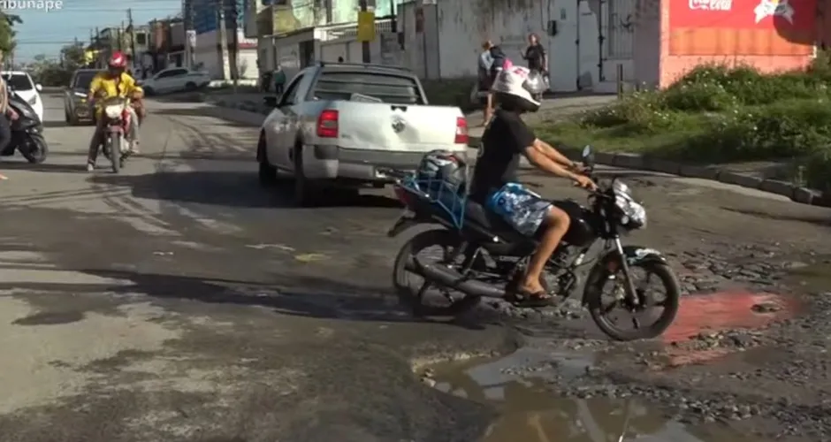 O asfalto não existe mais no cruzamento da Avenida Antônio da Costa Azevedo com a Segunda Perimetral Norte. No lugar dele, crateras. Elas forçam motoristas a invadir a contramão para salvar a suspensão dos veículos. A via, que rasga os bairros de Jardim Brasil II e Peixinhos, uma das principais ligações