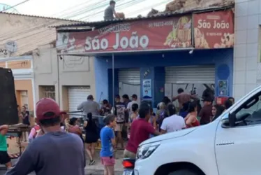 A estrutura do estabelecimento ficou completamente destruída, com destroços espalhados pelo local.