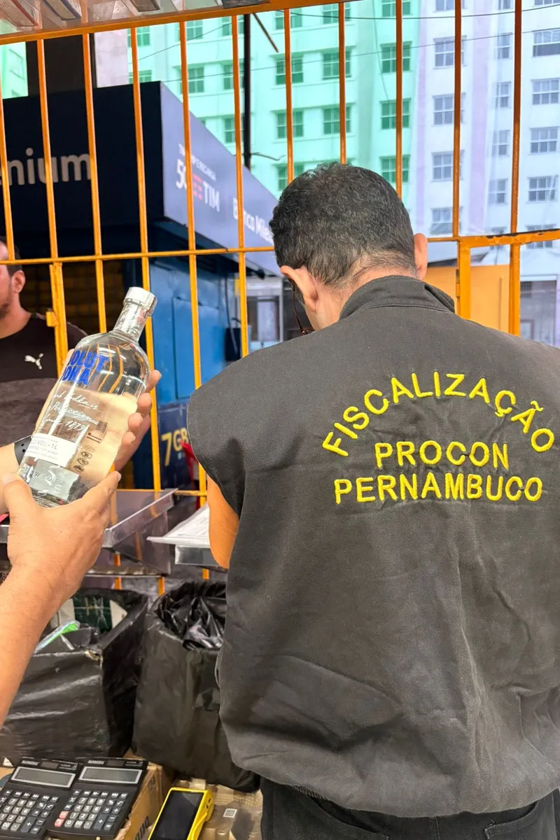 Fiscalização do Procon no Recife e Olinda apreende 30 garrafas de bebida destilada