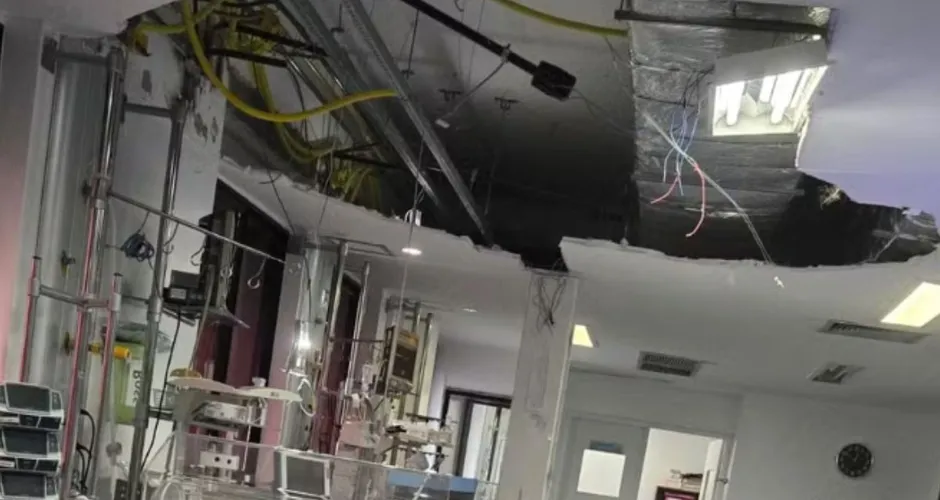 Parte do teto desabou, causando grande estrago na UTI neonatal |  Foto: Redes Sociais/Divulgação