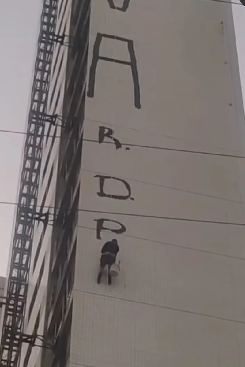 Os primeiros relatos são de que o grupo chegou ao prédio, com cerca de 20 andares, por volta das 3h da madrugada. Subiram até o teto e, utilizando cordas e técnicas de rapel, começaram, já com o dia claro, a rabiscar as paredes do edifício com tinta preta.