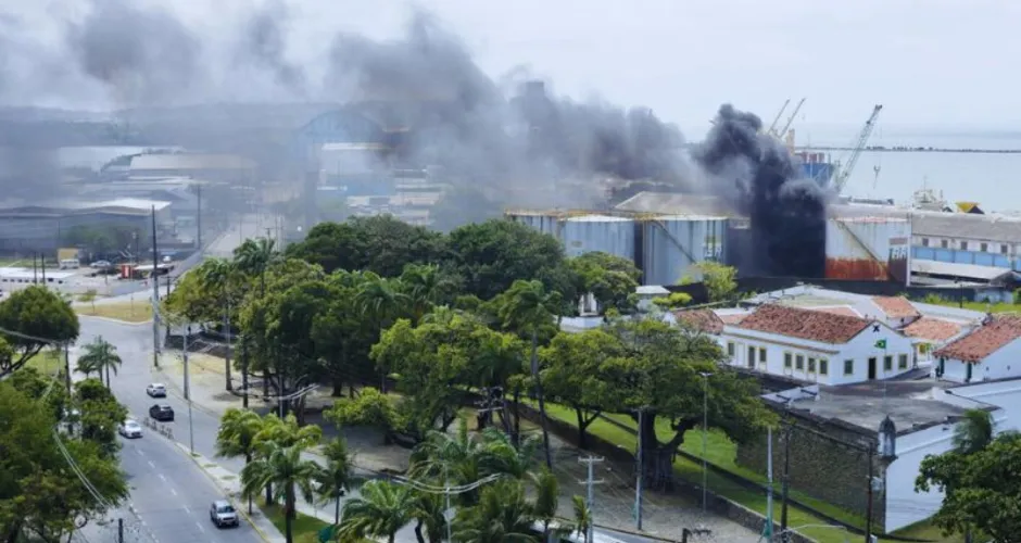 Recife: incêndio atinge tanque no Porto do Recife e bombeiros enviam 4 viaturas