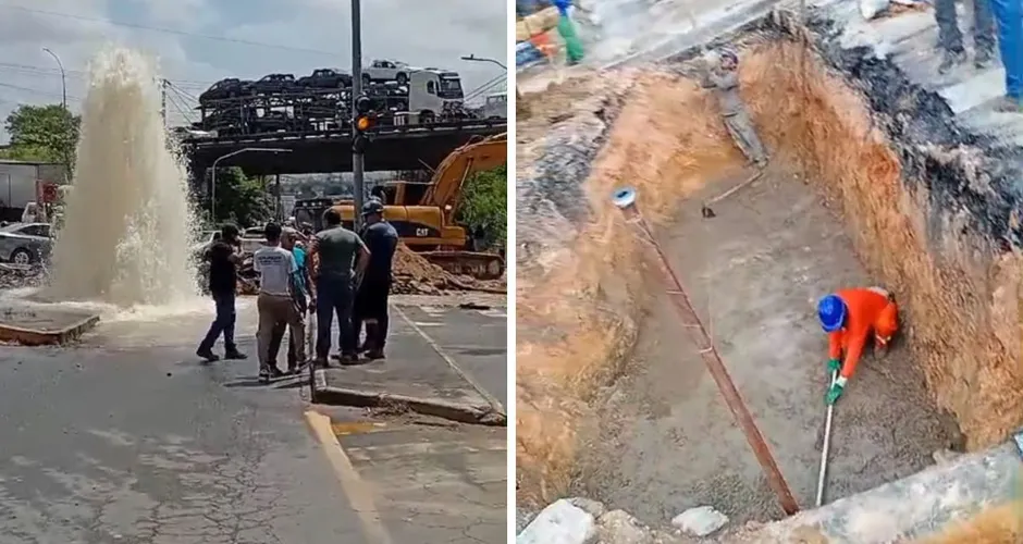 Equipes da Compesa foram mobilizadas no local com materiais e equipamentos para realizar os reparos. Inicialmente, os técnicos tentaram aplicar uma braçadeira na tubulação para agilizar o serviço, mas a solução não funcionou.