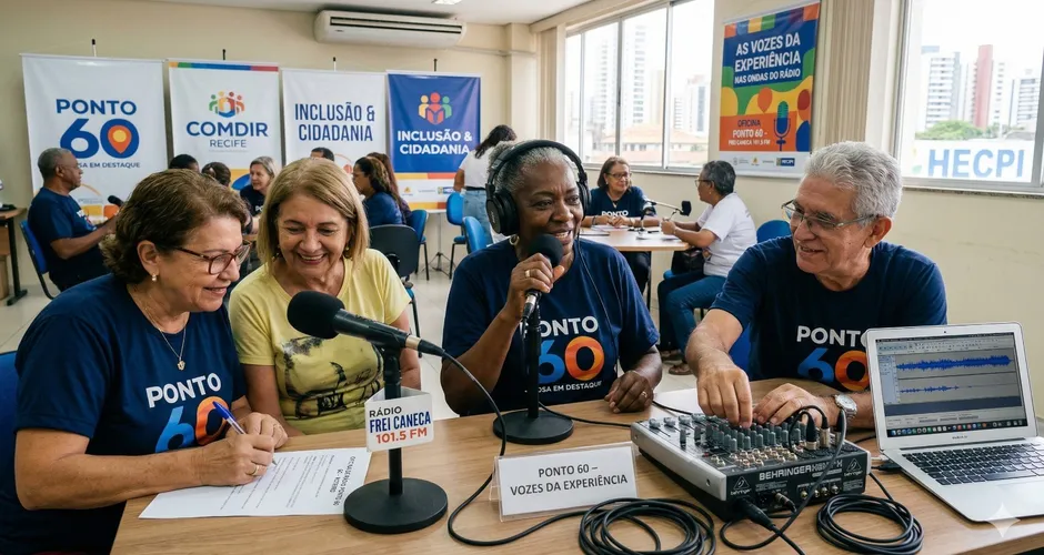 Eles têm muitas histórias de vida e experiências para passar às novas gerações; faltavam apenas a técnica e o espaço. Nesta sexta-feira, 10, acontece a oficina de rádio para o público 60+, como parte das ações do "Ponto 60 – População Idosa em Destaque". Produzido pela Mais Social, uma Organização da Sociedade Civil (OSC),o projeto disponibiliza gratuitamente um acervo de 40 episódios sobre envelhecimento ativo, saúde e cidadania, ocupando espaço na Rádio Frei Caneca (101.5 FM) todos os domingos. A iniciativa busca promover a inclusão digital e o protagonismo social, combatendo o idadismo ao colocar a pessoa idosa como emissora de sua própria mensagem.